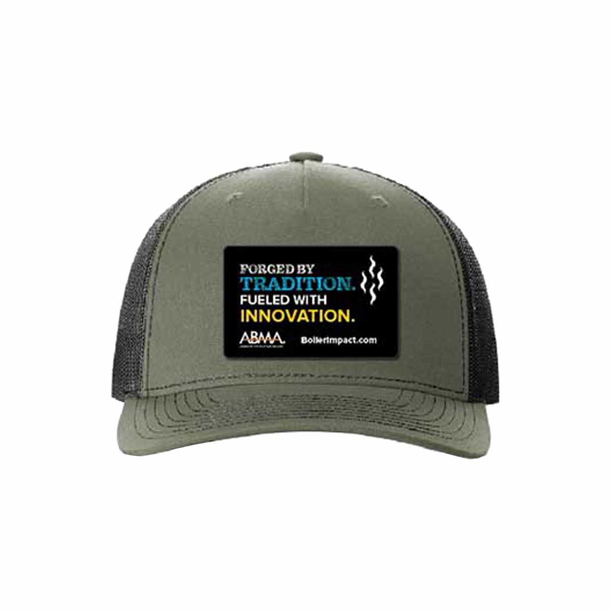 Show your industry pride with the ABMA “Forged by Tradition. Fueled with Innovation.” trucker hat. Featuring a structured olive front panel and breathable black mesh back, this hat delivers a perfect blend of durability, comfort, and modern style.